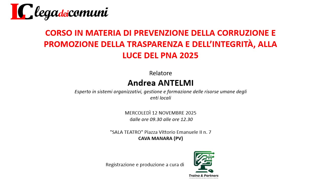 Corso in materia di prevenzione della corruzione e promozione della trasparenza e dell’integrità, alla luce del PNA 2025
